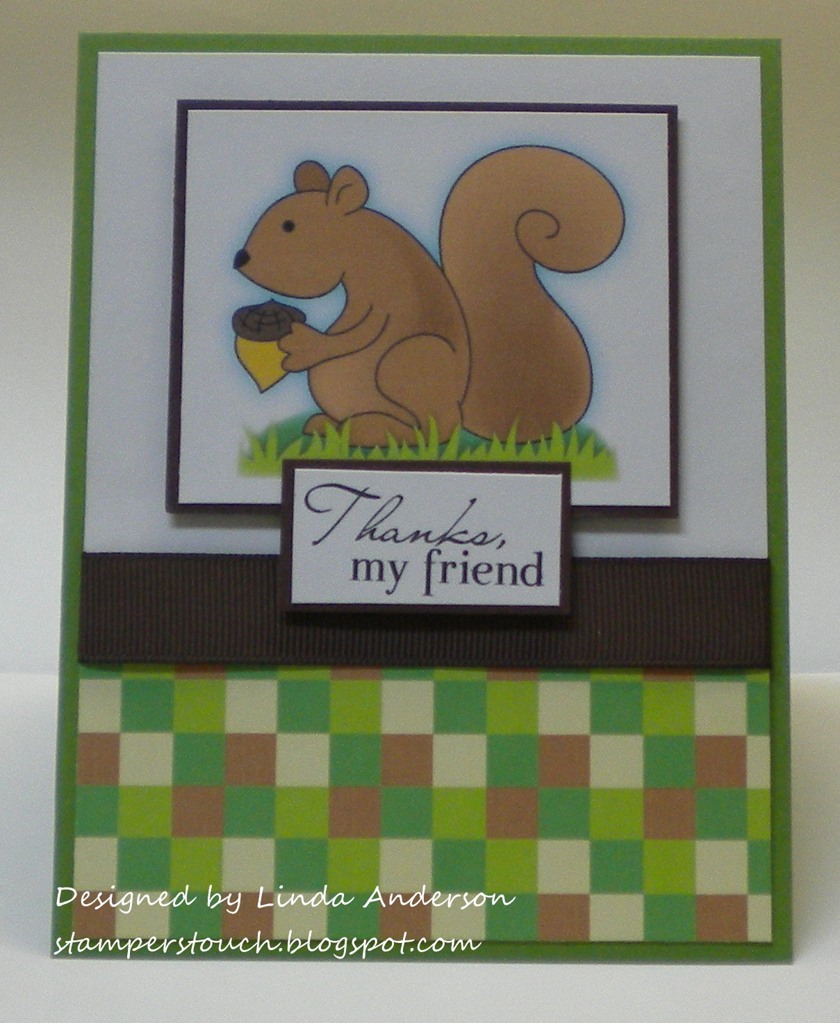 Okay, so it doesn't say "nutty" on the card, but this is perfect for the friend I will be sending it to!! I am continuing to embrace my Clean and Simple side, limiting the layers and embellishments. I love the look, just need to remind myself to cool it with the layering!! Playing in the CAS challenge over at The Outlawz helps, and this week the theme is to use an animal. I went with the colored version of a Doodle Pantry image called Nutty for You. I even used some of the digital paper included in the set. So this is my quick & easy clean & simple card!!!