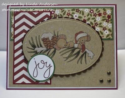 We have a new challenge starting today over at Holly Jolly Christmas, and our theme is to use kraft. I actually printed this sweet digi from one of our sponsors, Di's Digi Stamps directly onto kraft card stock. This is a pre-colored image called Not a Creature Was Stirring...I do love those pre-colored digis!! I just used a white crayon on the snow and Santa hat trim. Love the earth tones for a Christmas card too, so non-traditional! Sure hope you can join us over the next two weeks at Holly Jolly Christmas for some "kraft"-y fun!